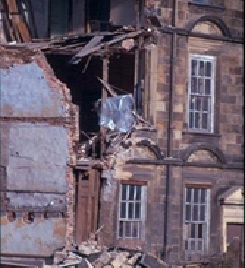 However the building was in a dilapidated and dangerous condition with an estimated £20,000 needed to renovate it. The problem appeared to be solved when a donation from an anonymous donor enabled the North East Civic Trust to purchase the property and start renovations. (Did anybody discover the identity of the donor?) Work started in 1972 with scaffolding erected. The facia was made safe and the roof repaired to make it waterproof. In 1975 whilst undergoing further work, workmen noticed movement in the structure and promptly cordoned off the building. Two days later a corner collapsed into the street below. The cost of underpinning was prohibitive, leaving no alternative but complete demolition.